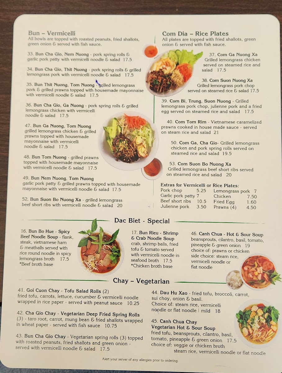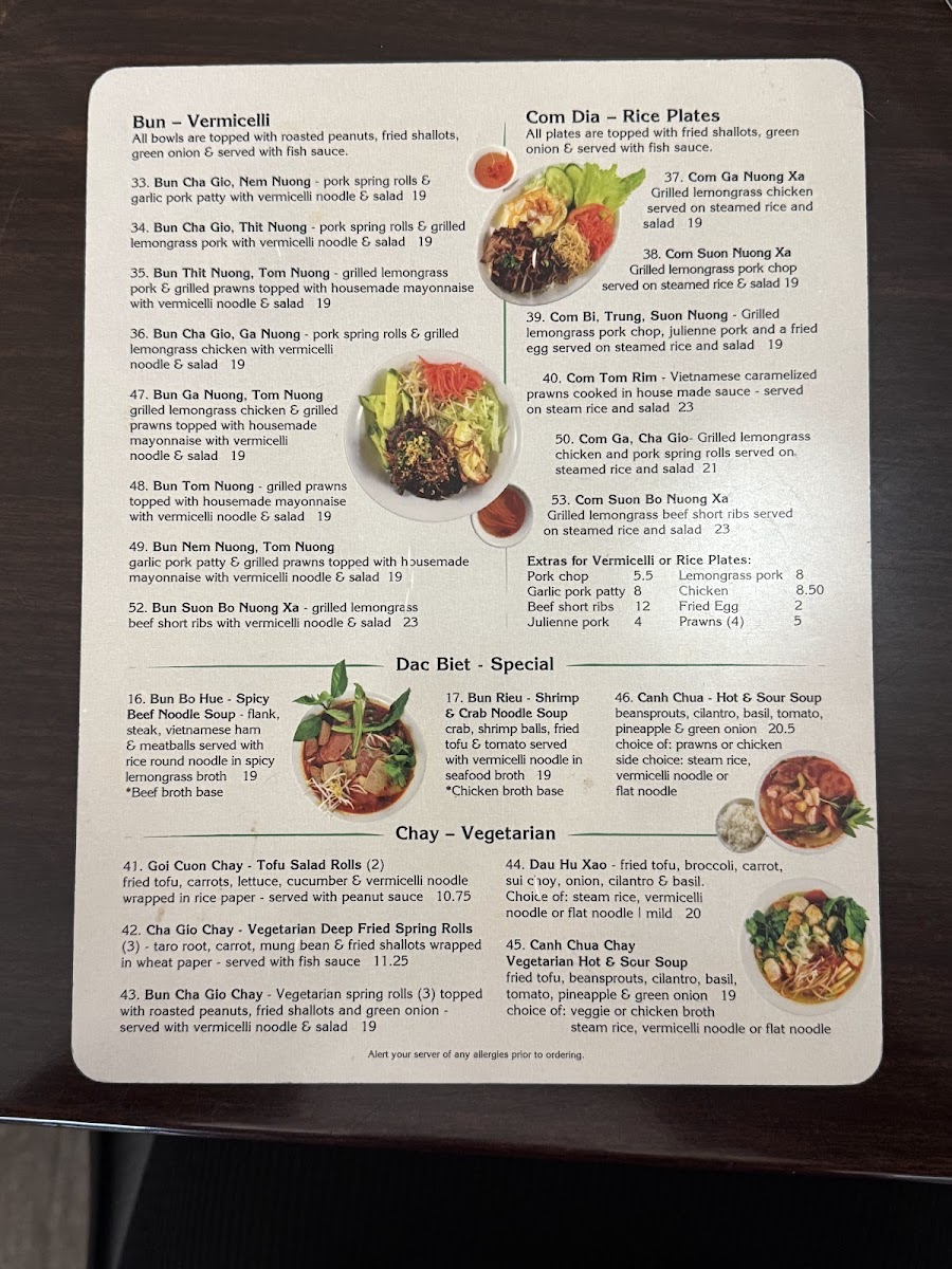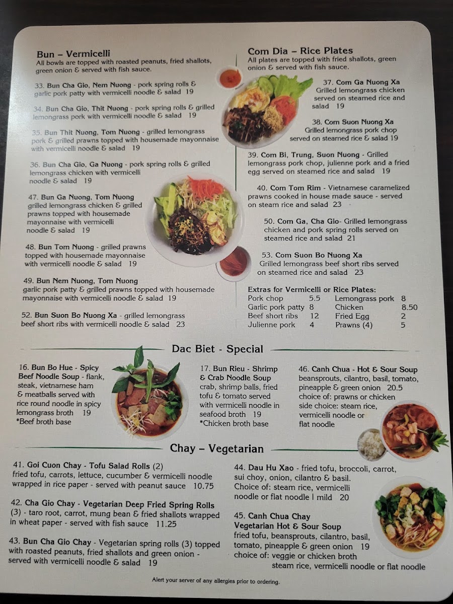 Menu - Pho Vy Restaurant