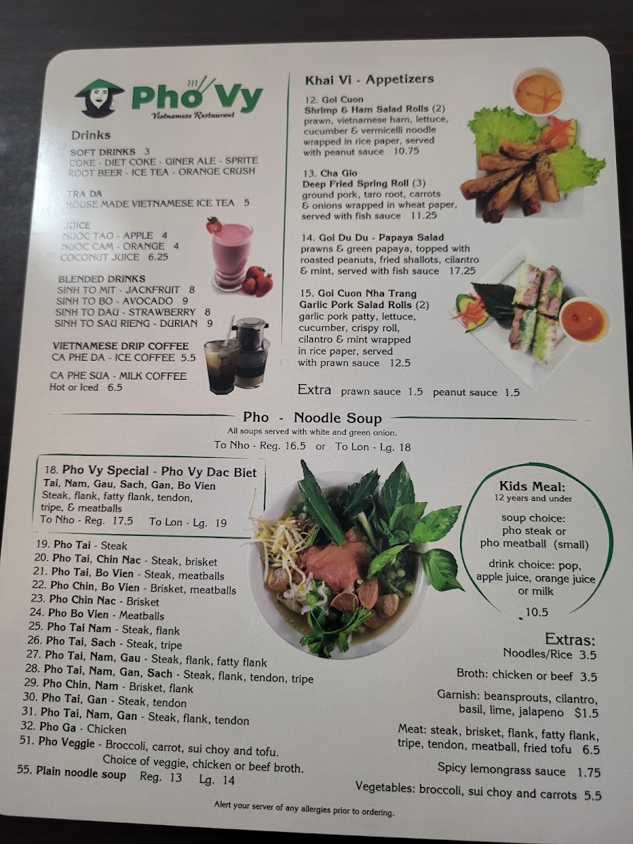 Pho Vy Restaurant Menu